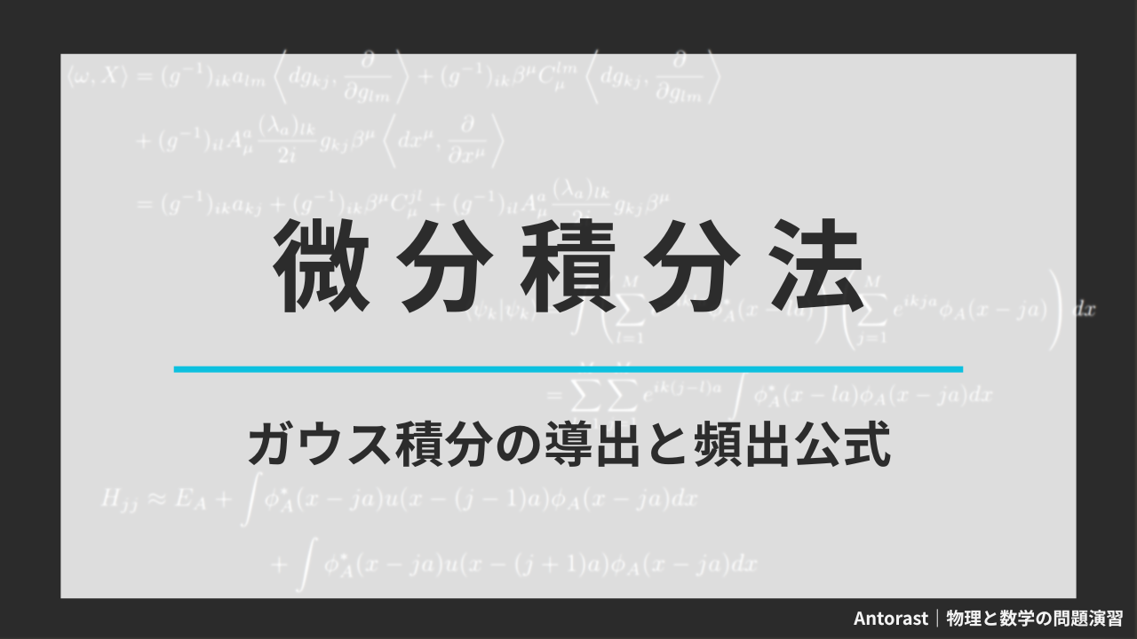 統計力学や量子力学の計算で頻出であるガウス積分\[\int_{-\infty}^{\infty} e^{-ax^2}dx\] について,導出と積分公式,及びその導出を紹介します。