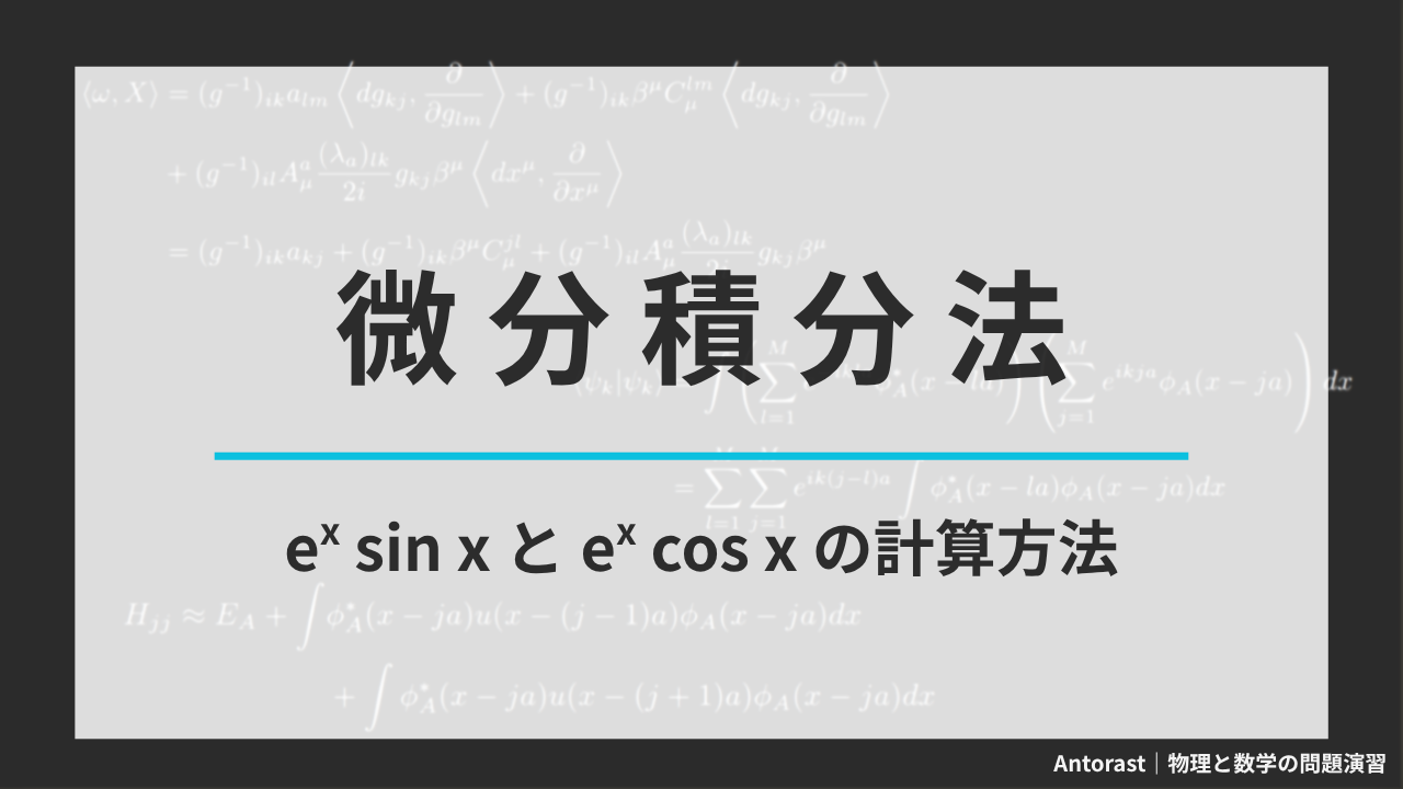 高校数学で頻出の積分 \[\int e^x \cos x dx, \quad \int e^x \sin x dx\] を計算する方法を4通り紹介します。