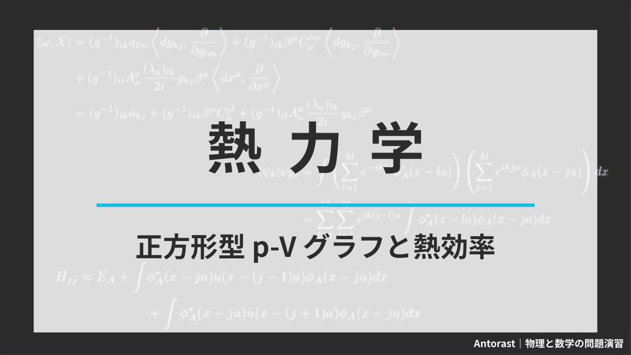 正方形の形のp-V グラフから熱効率を求める方法をまとめました。