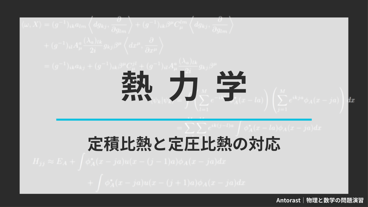 以上から \[C_V =\left(\frac{\partial U}{\partial T} \right)_{V},\quad C_p = \left(\frac{\partial H}{\partial T} \right)_p\] という式が導くことが出来ました。これはとてもキレイ&重要な関係式であり