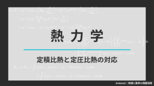 定積比熱と定圧比熱の定義と他の物理量との対応 定積比熱と定圧比熱について,その定義と内部エネルギーやエントロピーとの対応をまとめました。