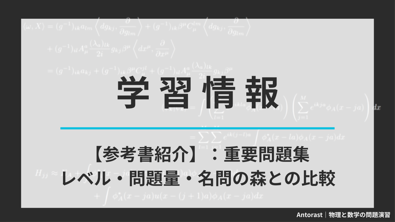 重要問題集は数研出版の発行する物理の入試問題集であり,大学入試2次試験レベルの典型的な問題が網羅されています。