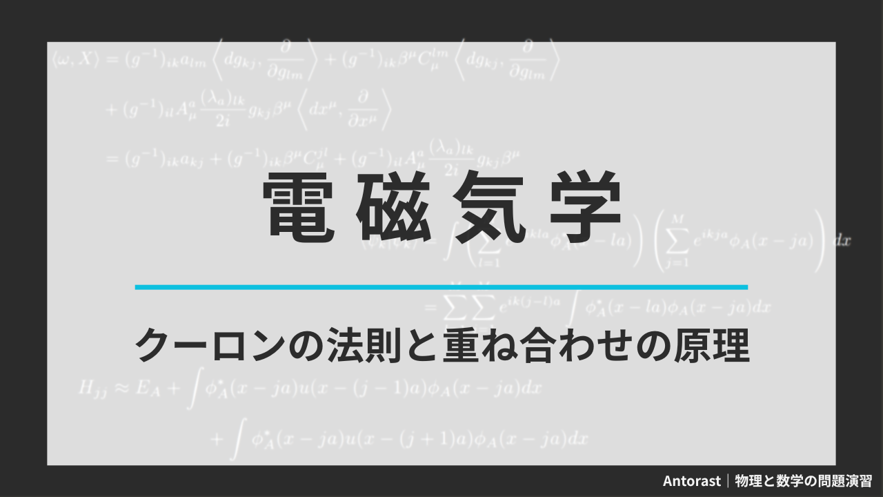 クーロンの法則と重ね合わせの原理の基本事項と試験でよく出る例題についてまとめました。
